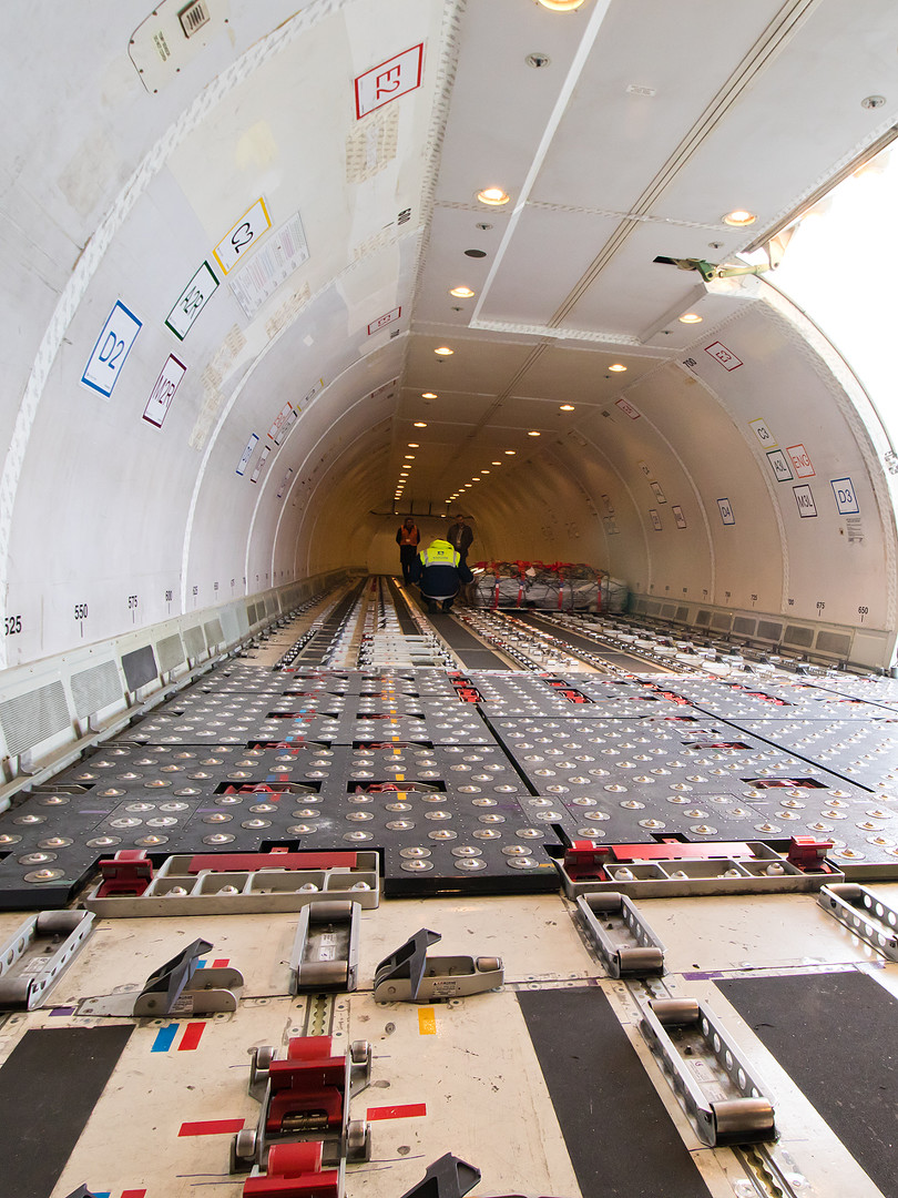 The maximum reach of the Boeing 767-200 is 9,600 km, and the total cargo space is over 440 m3. The machine can take on board up to 45 tons, depending on the length of the route. The lower deck holds up to 12 LD-2 containers, while the upper deck can be filled with pallets in five different configurations.