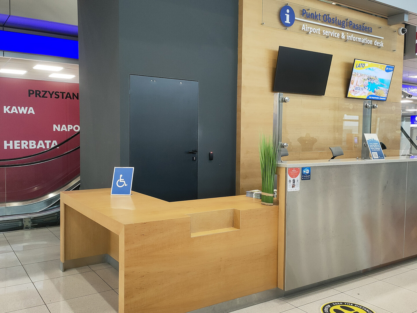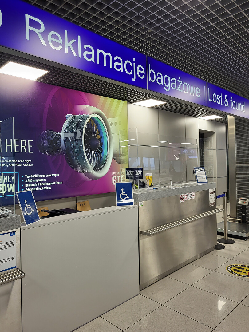 > osobiście w punkcie zgłoszeń (Punkt Obsługi Pasażera) usytuowanym na środku terminala pasażerskiego, poziom 0