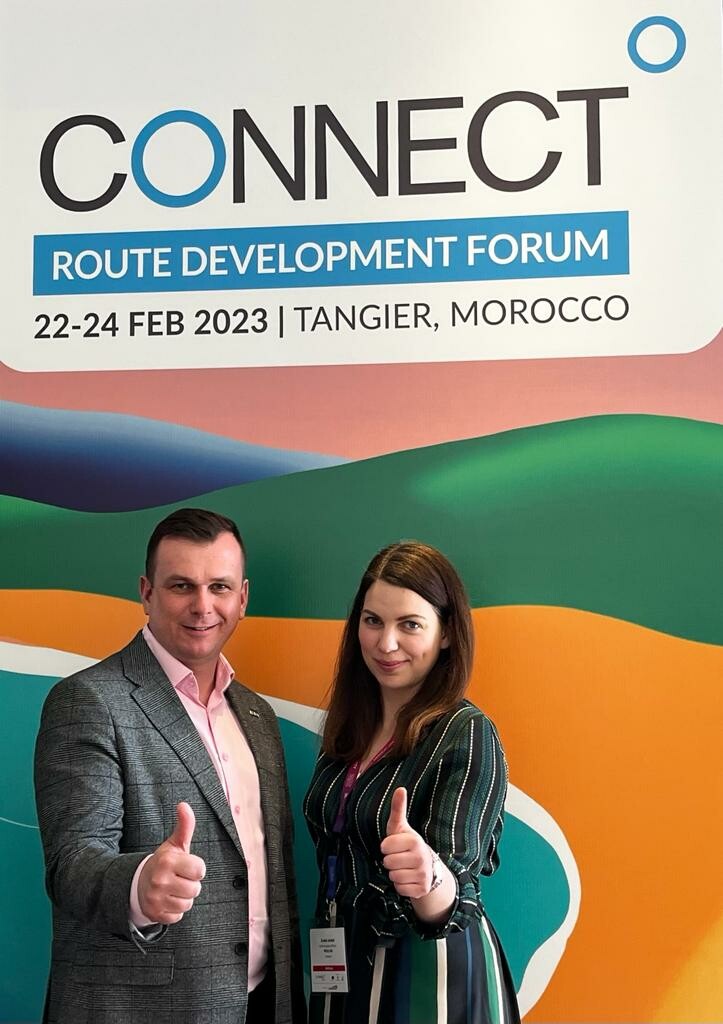 Домовленість про новий літній напрямок була заключена представниками аеропорту Ряшів і WizzAir у Танжері, Марокко, де вони брали участь у Connect Route Development Forum. На фото: Евелін Джекель, виконувач обов’язків мережевого директора WizzAir та Адам Гамрищак, голова правління аеропорту в Ясьонці. фотоматеріали преси