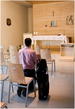Каплиця знаходиться на другому поверсі термінала перед ескалатором.
