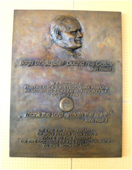 Меморіальна дошка встановлена на 10-ту річницю перебування Яна Павла II у Жешуві Розташована перед входом у каплицю. |